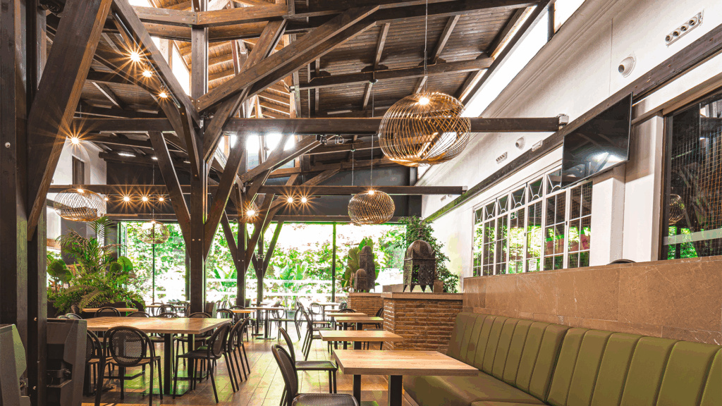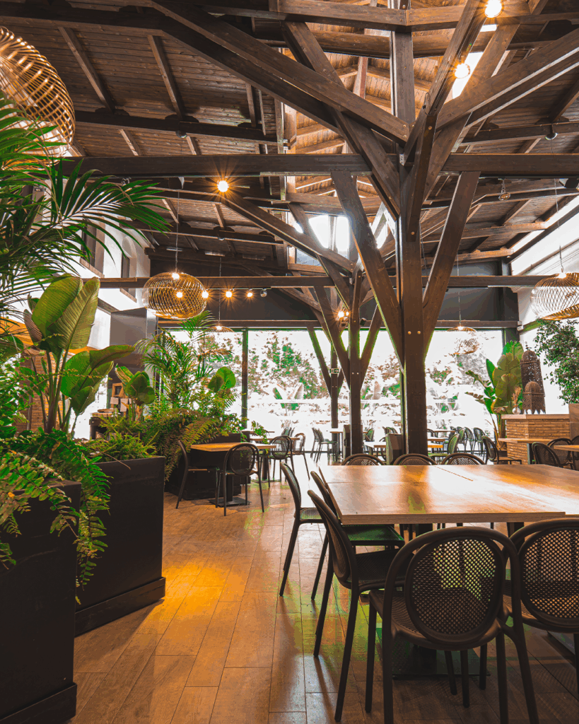 Botánico es un acogedor salón de madera y plantas selváticas ideal para disfrutar en familia. Cuenta con zona de entretenimiento infantil con monitores, pistas depostivas y sistema de video vigilancia para poder ver a tus pequeños en todo momento.